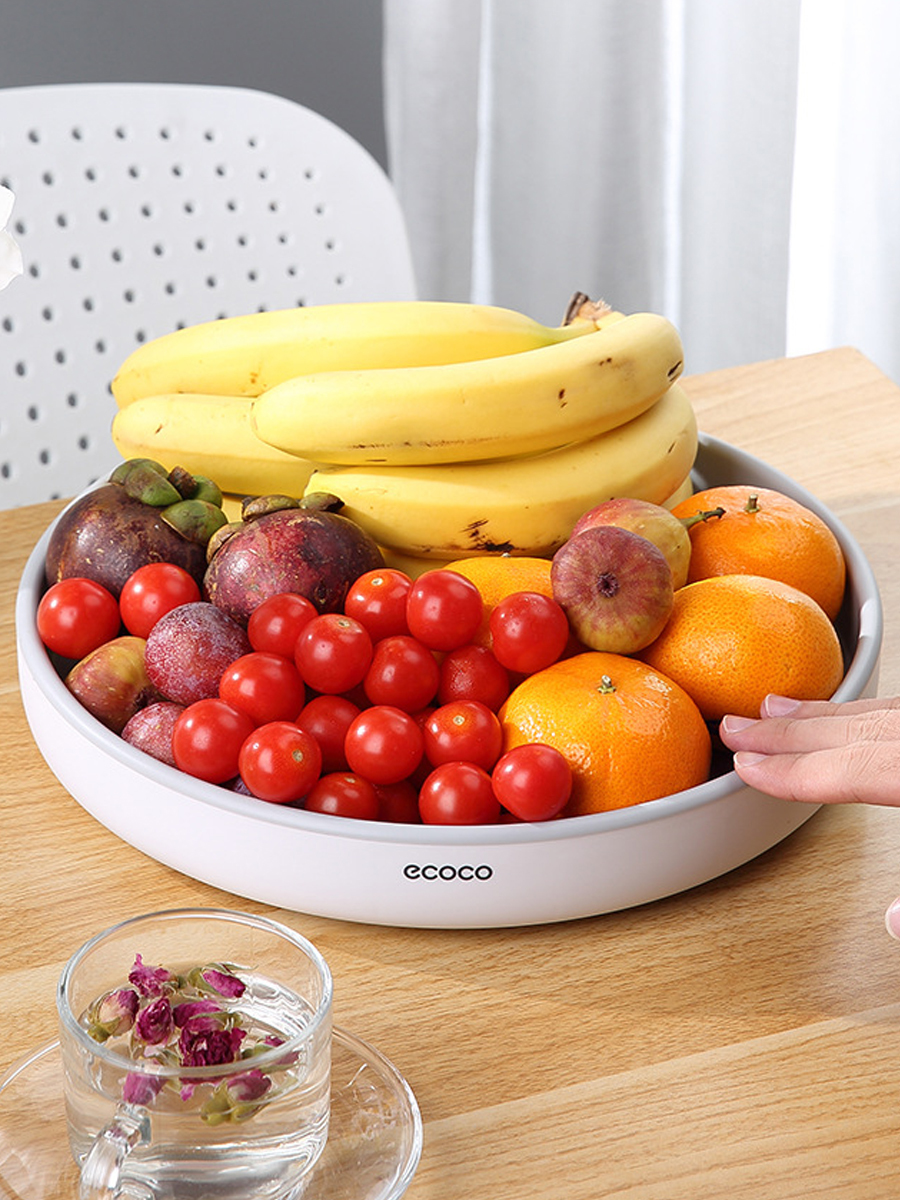 Вращающаяся подставка выполняет функцию поворотного столика. Предназначена для сервировки стола, удобного размещения фруктов и овощей, компактного хранения небольших баночек со специями и приправами или бутылочек с соусами. Форма поверхности подноса - круглая, с предохраняющим от сползания бортиком высотой 50 мм. Детали подноса изготовлены из пищевой термопластичной резины и полипропилена. Применяемые конструкционные материалы характеризуются повышенной прочностью, долговечностью, износостойкостью, не впитывают запахи, легко отмываются от различных загрязнений. Поставляется аксессуар в двух цветах - черном и белом. Установленные на круглый крутящийся поднос предметы во время поворота хорошо удерживаются на поверхности за счёт бортика и нескользкого покрытия. При этом нагруженная подставка-поднос вращается плавно и бесшумно. Поворот допускается в любом направлении на 360 градусов. Чтобы купить поднос, перейдите на страницу товара на маркетплейсе и оформите заказ.